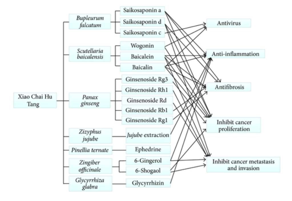 La formule thérapeutique se nomme en chinois Xiao Chai Hu Tang – XCHT, elle figure dans le traité dit Shanghan Lun. (1)